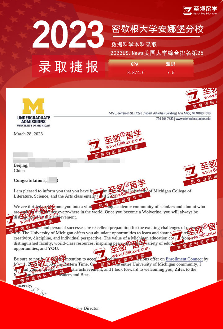 录取结果:University of Michigan,BSc in Data Science 密歇根大学安娜堡分校数据科学本科录取