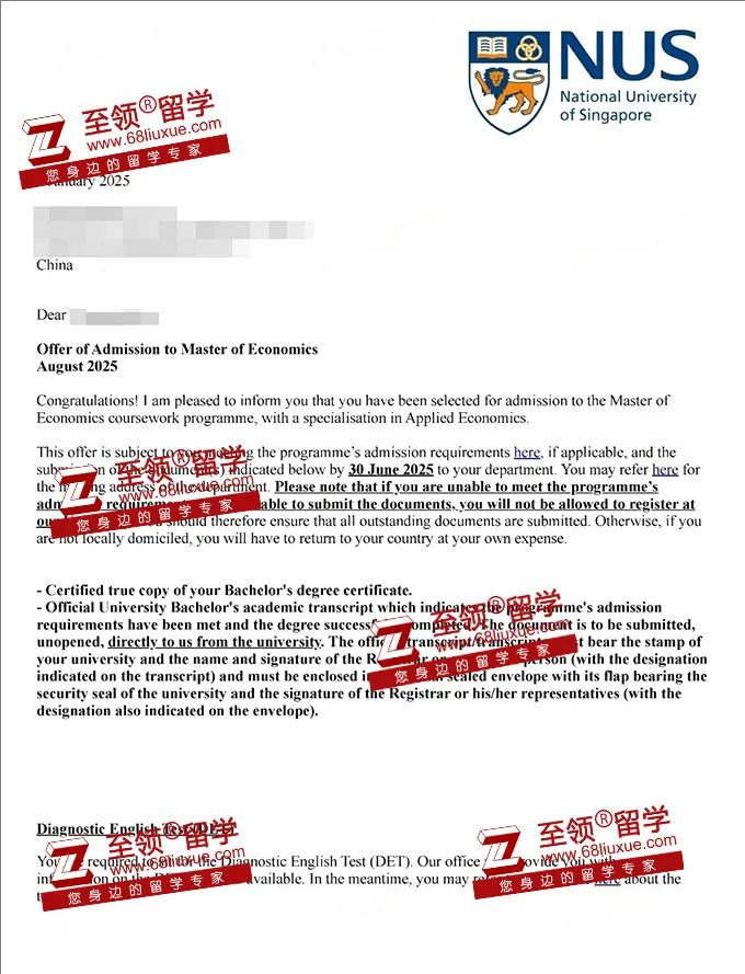 在学校选择上,我们推荐了伦敦政治经济学院、华威大学、曼彻斯特大学、爱丁堡大学、新加坡国立大学、南洋理工大学等。文书方面着重突出学生的交换和实习经历。最终,Y同学如愿获得梦校新加坡国立大学经济学硕士OFFER。
