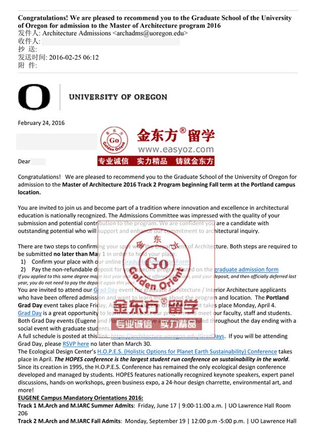 录取结果:俄勒冈大学建筑学专业硕士