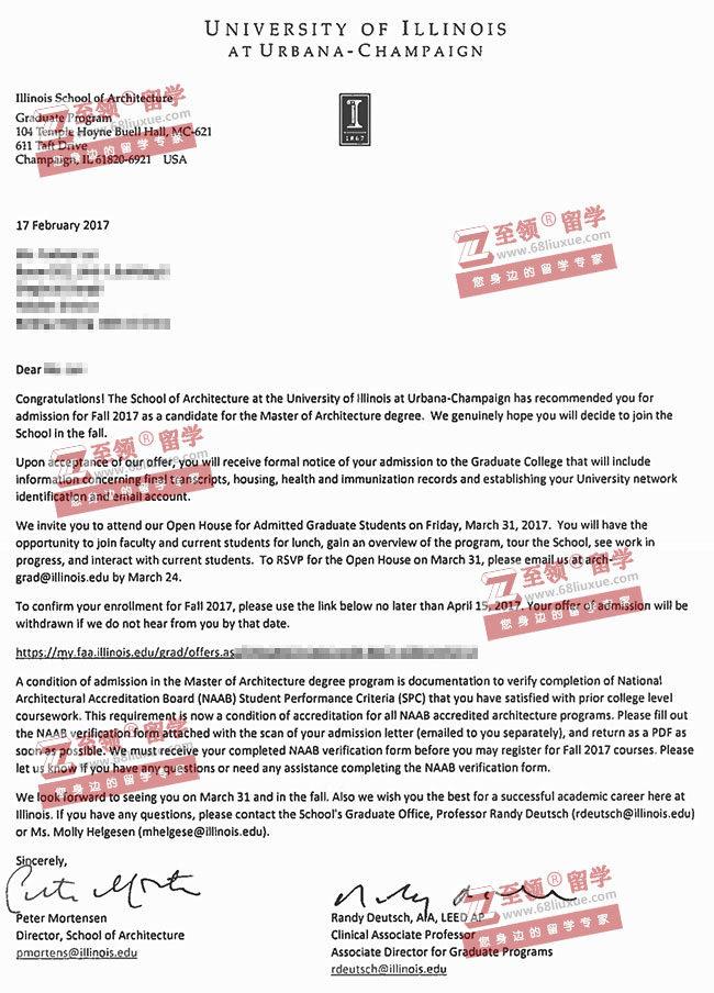 录取结果:University of Illinois at Urbana-Champaign(伊利诺伊大学香槟分校),Architecture (MARCH 2yr)
