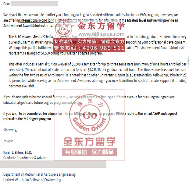 功夫不负有心人,学生最终收到佛罗里达大学发来的录取通知。