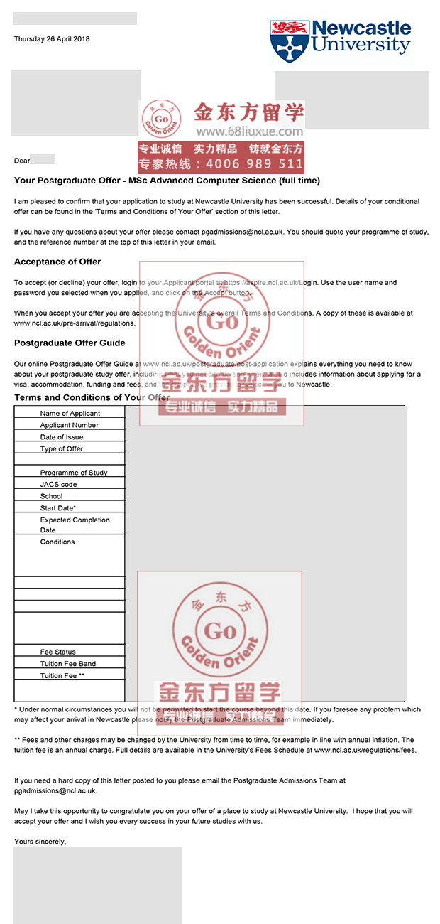 录取结果:Newcastle University纽卡斯尔大学,MSc Advanced Computer Science高级计算机硕士
