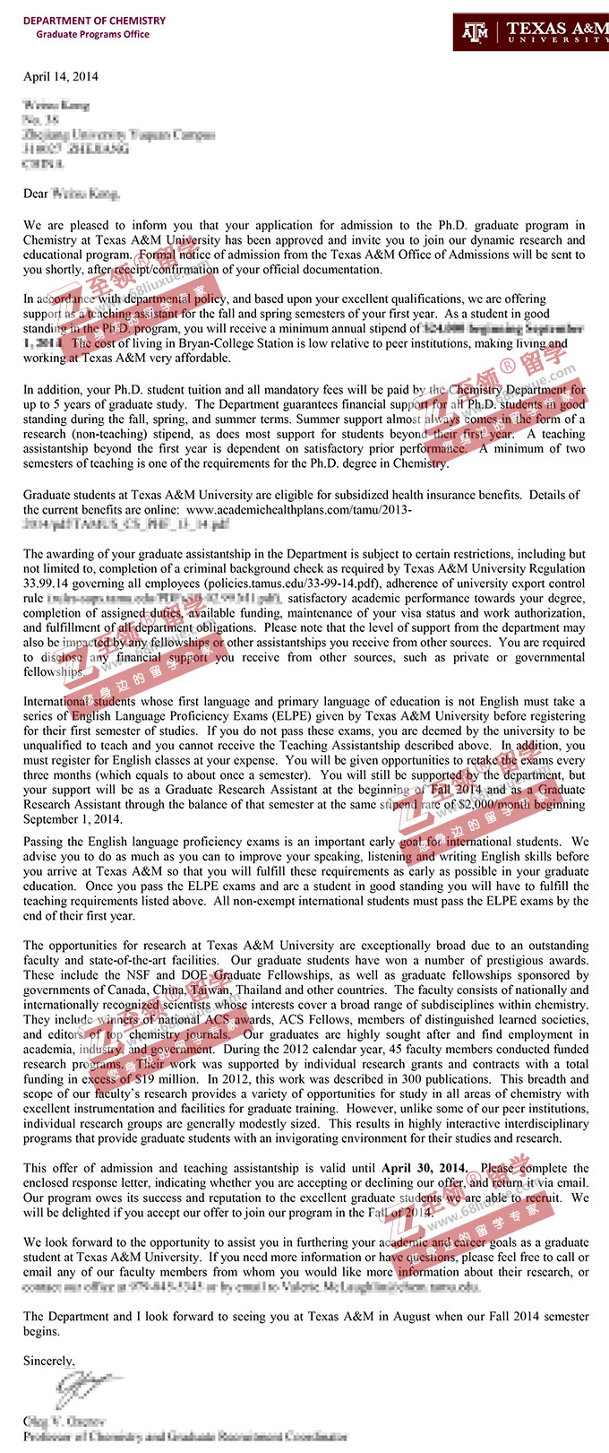 录取结果:Texas A&M University 德州农工大学,PhD in molecular and environmental plant sciences分子与环境植物科学博士,免学费+$ 21,996/年
