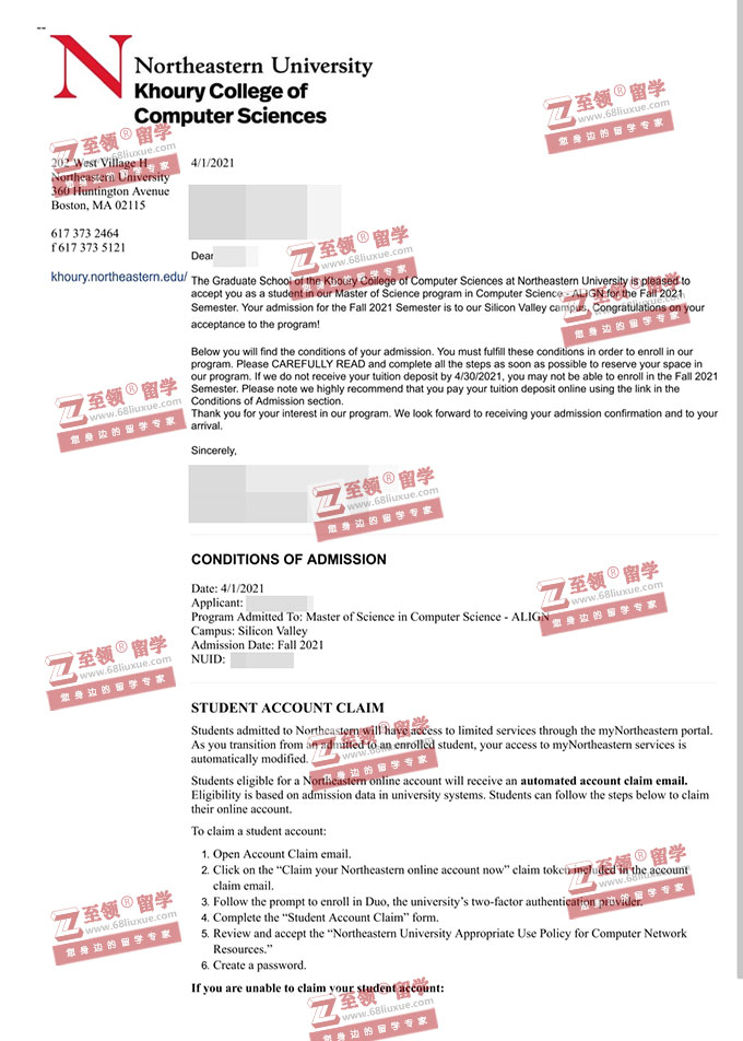 录取结果:NEU,Master of Science program in Computer Science - ALIGN东北大学计算机科学硕士录取