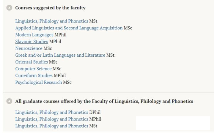 MPhil in Linguistics, Philology and Phonetics语言学,语言学和语音学硕士