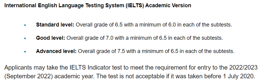 UCL本科语言要求分成三个等级:Standard、Good、Advanced,需要具体专业具体查询。雅思托福要求是这样的: