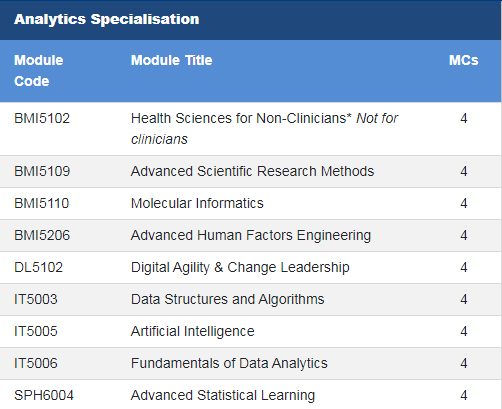 本项目由新国大杨潞龄医学院(NUSMed)生物医学信息学系开设,并与新国大计算机学院、苏瑞福公共卫生学院和系统科学院合作。