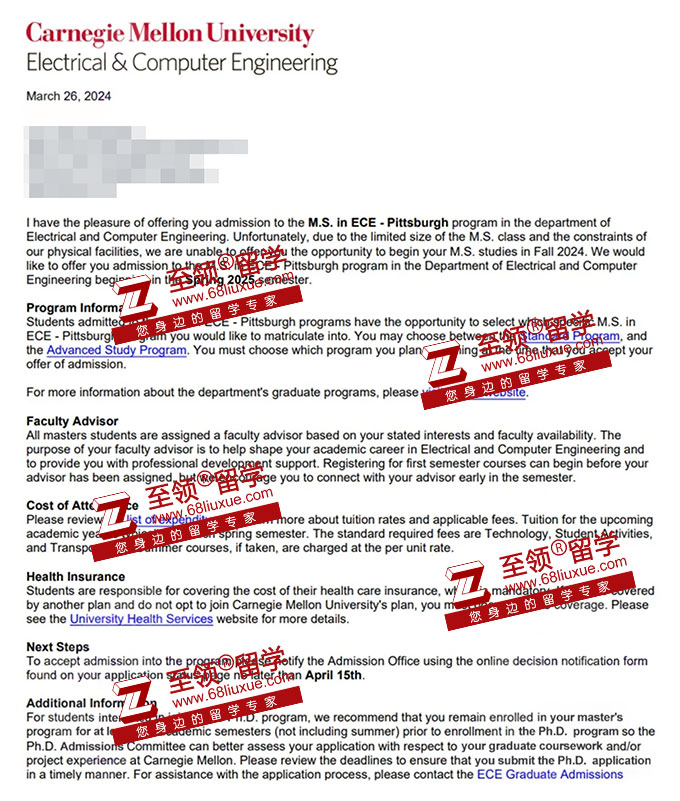 录取结果:CMU,M.S.in Electrical and Computer Engineering 卡内基梅隆大学电子工程硕士录取