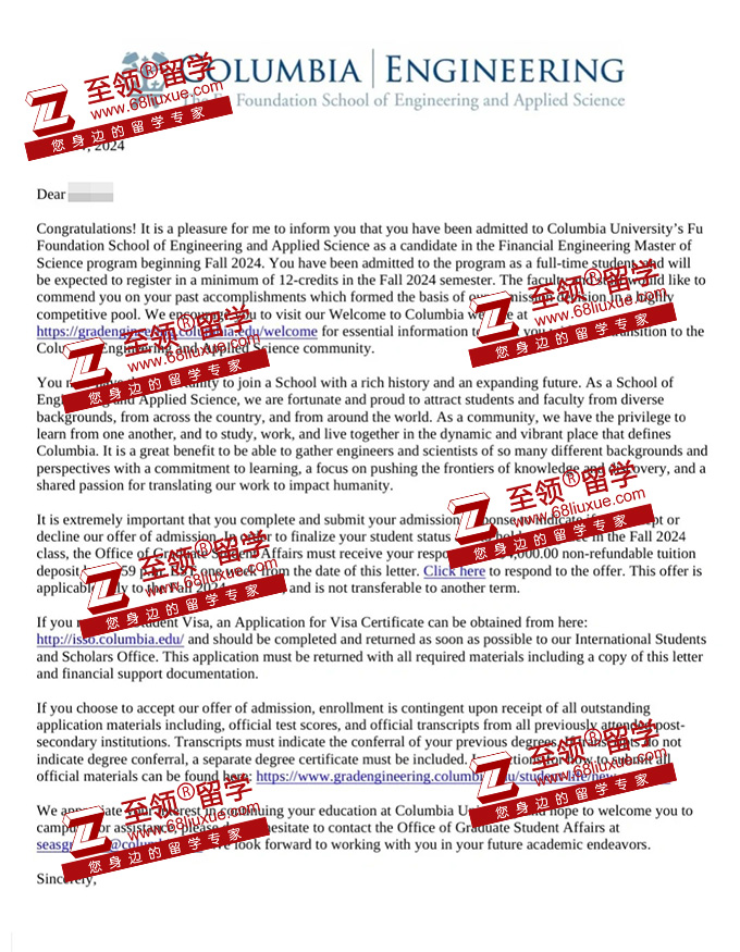 录取结果:Columbia University,MS in Financial Engineering哥伦比亚大学金融工程硕士录取