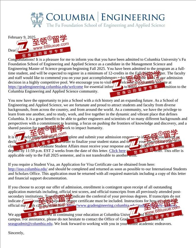 录取结果:哥伦比亚大学管理科学与工程硕士录取