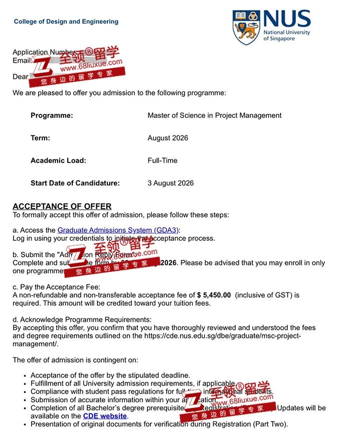 经过精准的申请策略规划与材料优化,T同学成功收到新加坡国立大学项目管理硕士的录取通知书。