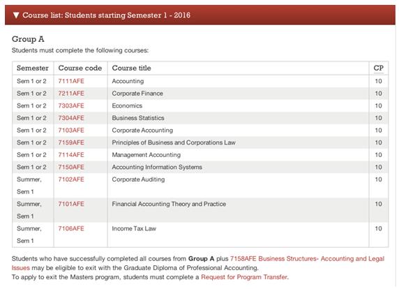 要求:申请人已获得非会计学士学位,就读的大学需经澳大利亚海外资格认证办公室(NOOSR)认证。且本科GPA4.0(即60%)以上,该项目也在Nathan校区授课。