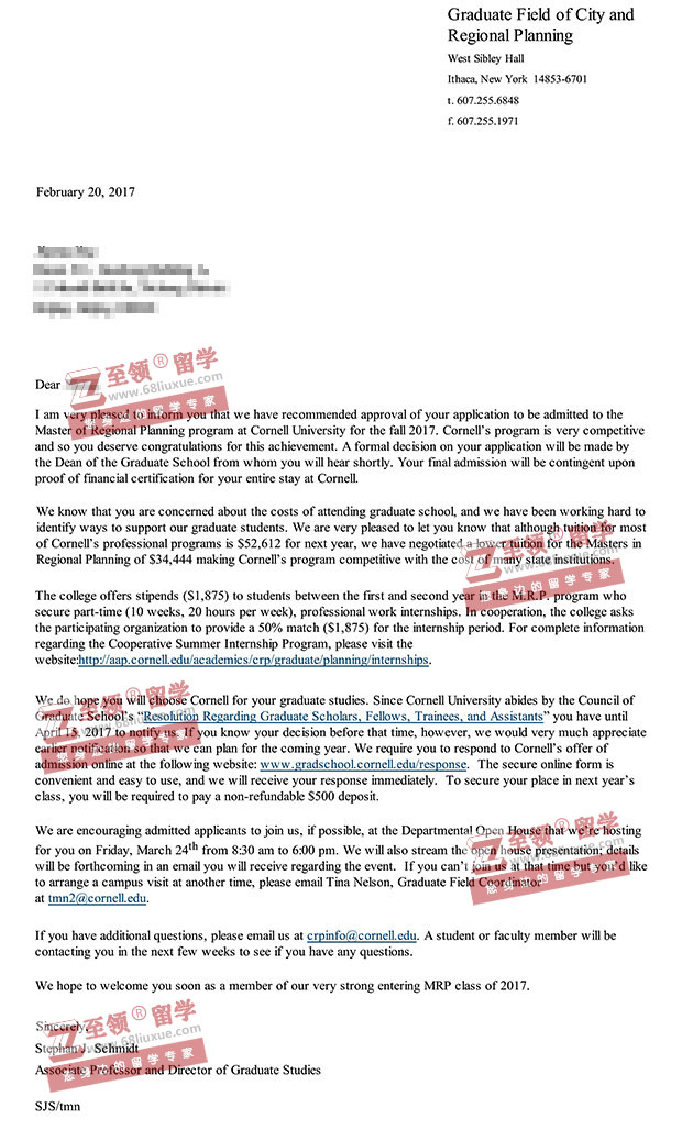 录取结果:Cornell University(康奈尔大学), Master of Regional Planning 区域规划硕士