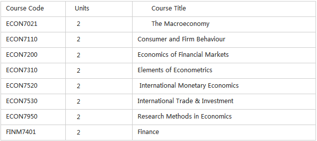 Queensland 硕士金融专业为Master of International Economics and Finance(国际经济和金融硕士)