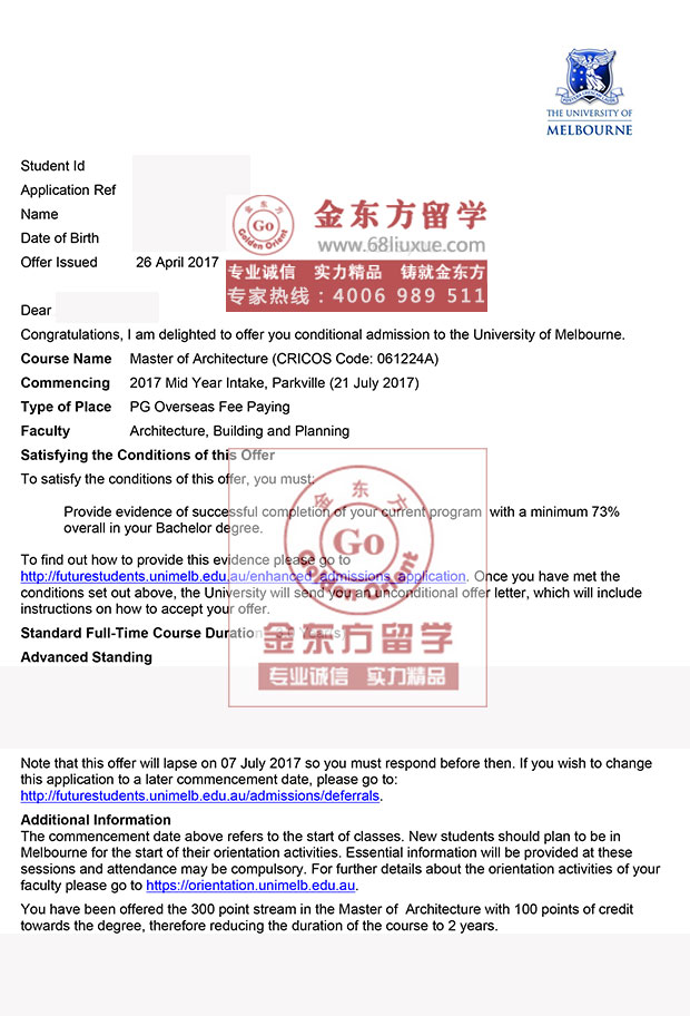 录取结果:University of Melbourne墨尔本大学,Master of Architecture建筑学硕士