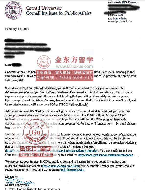 录取结果:Cornell University康奈尔大学,MPA