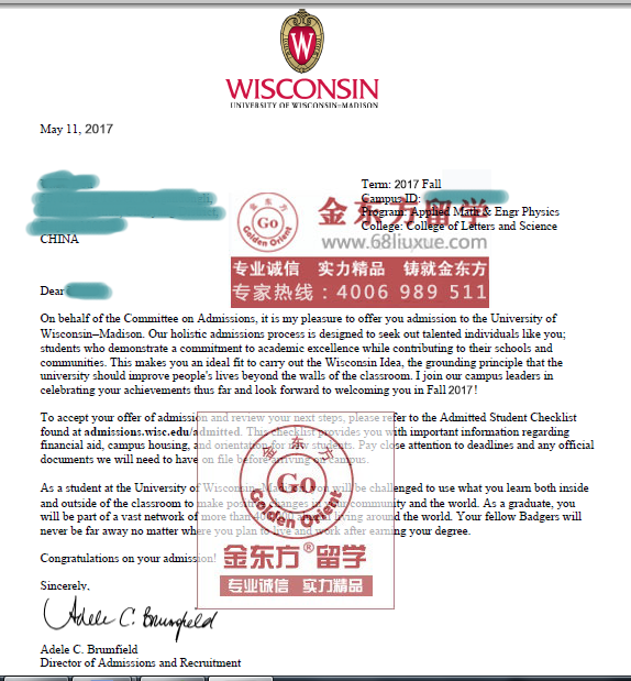 在递交了所有的申请材料后,苟同学于今天收到了威斯康星大学麦迪逊分校计算机科学专业本科的录取。
