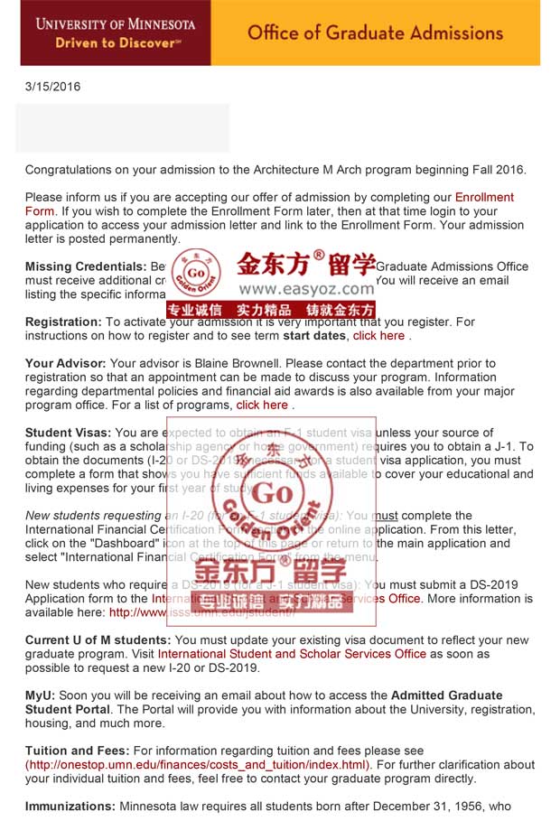 选择更适合自己的学校:在接下来的近两个月的等待过程中,L同学不断问我们学校出结果的时间,老师一直在安慰她不要着急,四月份应该可以出来结果。因为托福成绩比较低,一直没有考出来更高的成绩,她自己都对录取没有报太大希望,准备继续申请17年春季的时候,学校来了录取,在和老师沟通过之后,对学校有了更多的了解,感觉华盛顿其实并不是最适合自己的,最后她决定去明尼苏达大学这所更适合自己的学校。