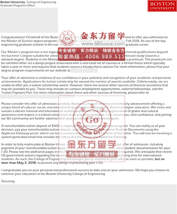 录取结果:Boston University波士顿大学,MS in Electrical and Computer Engineering (ECE)电子与计算机工程硕士