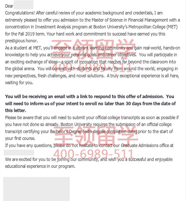 录取结果:Boston University波士顿大学,Master of Science in Financial Management 金融管理理学硕士