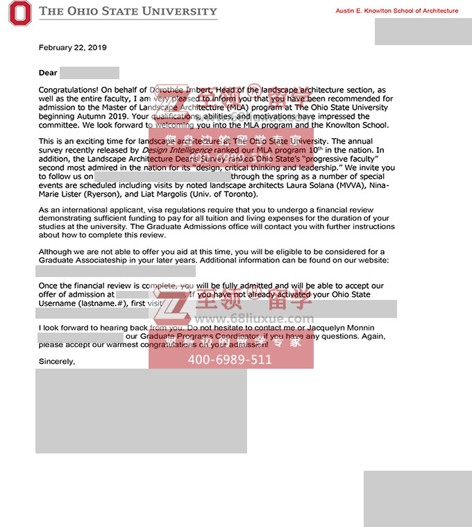 录取结果:Ohio State University俄亥俄州立大学,Master of Landscape Architecture景观设计硕士