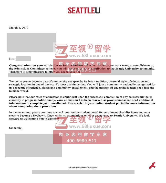 录取结果:Seattle University西雅图大学, Bachelor of Arts in Business Administration工商管理本科